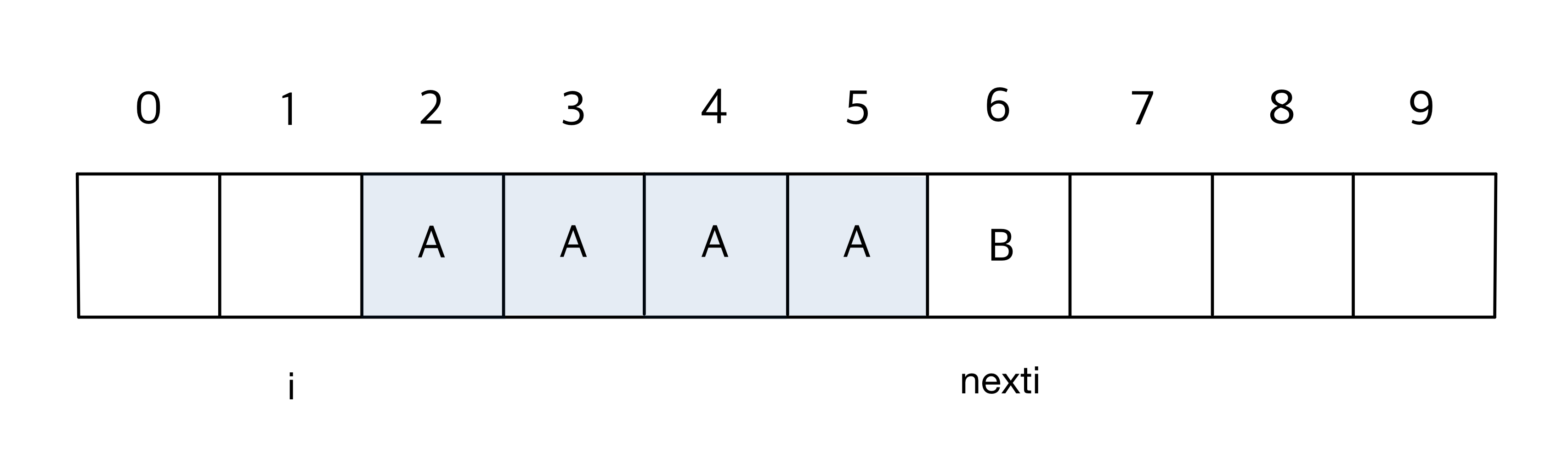 특정 인덱스 i에 대하여, i 이후로 'A'가 연속적으로 등장한 구간을 지난 포인트를 nexti라고 해보자.