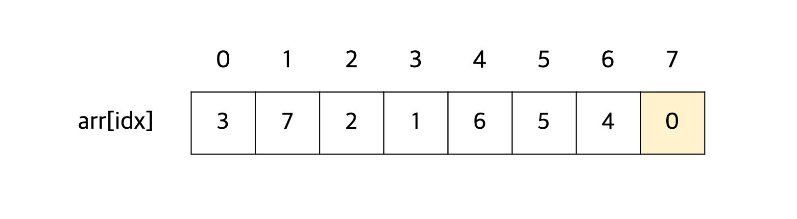 마지막으로, 인덱스 6번에 있는 숫자 7은 인덱스 7번에 있는 숫자 0보다 크므로 두 수의 자리를 바꾼다.