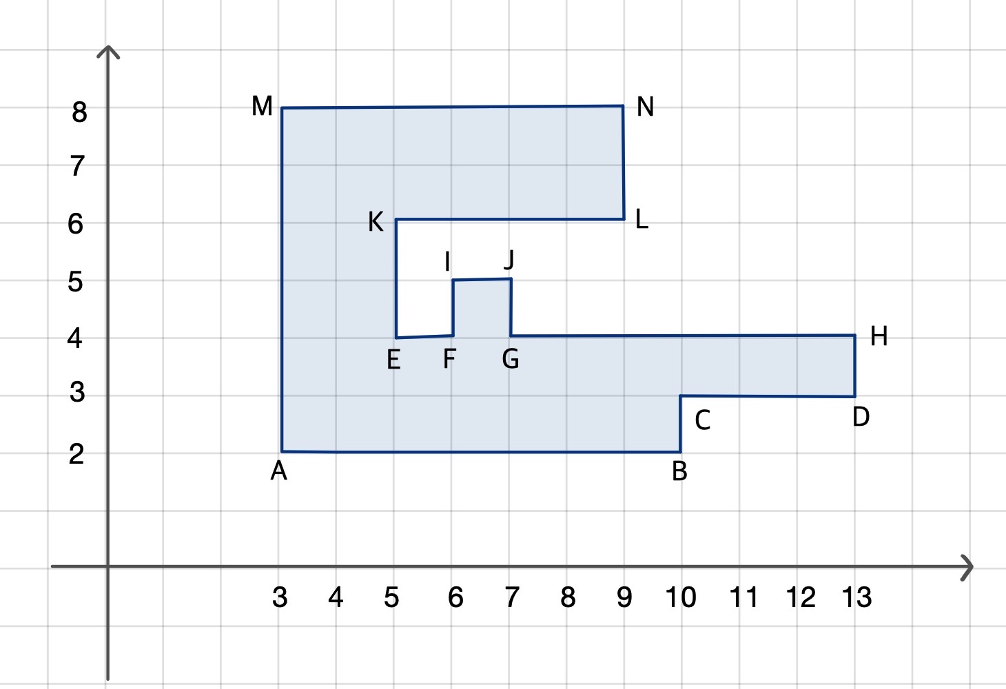 + (y가 4인 네 좌표 E, F, G, H를 오름차순으로 정렬한 벡터 {E, F, G, H}에서 (E와 F의 차) + (G와 H의 차)) ...